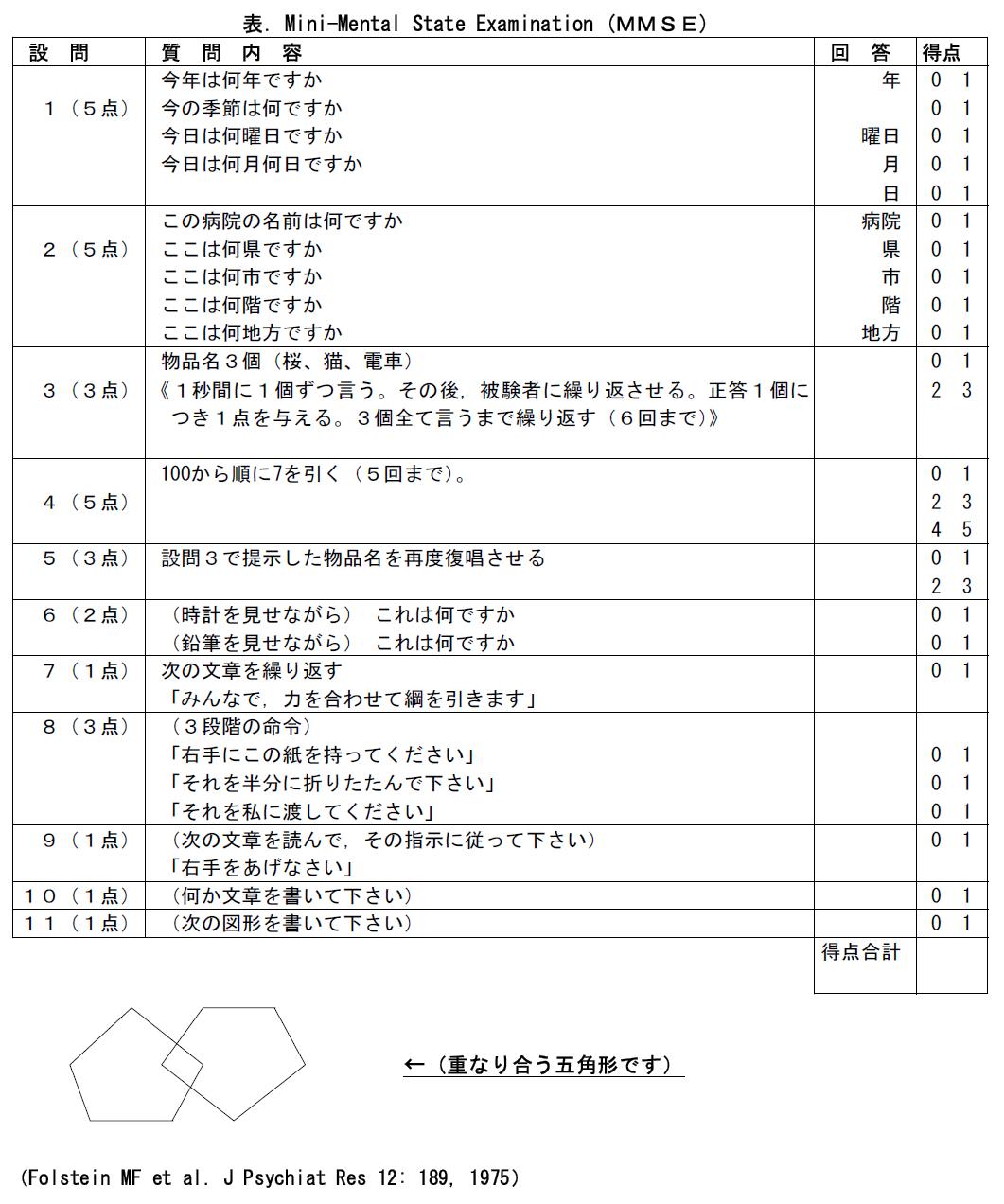 MMSE(ミニメンタルステート検査)